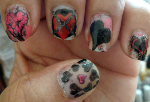 Decided to do some Un Valentine's Day manicures. Although, apparently on my youtube channel most are upset and think it's disgusting that I would do such a thing. To each their own. Not everyone celebrates Valentines Day. It's not sacrilege. I have some friends who don't like the commercialism. I have some friends who are single and just broke up and they aren't happy. I'm not defending anything because there is room for all different types of designs, I just found the outrage kind of over the top. If you don't like them, you don't like them but disgusting.....